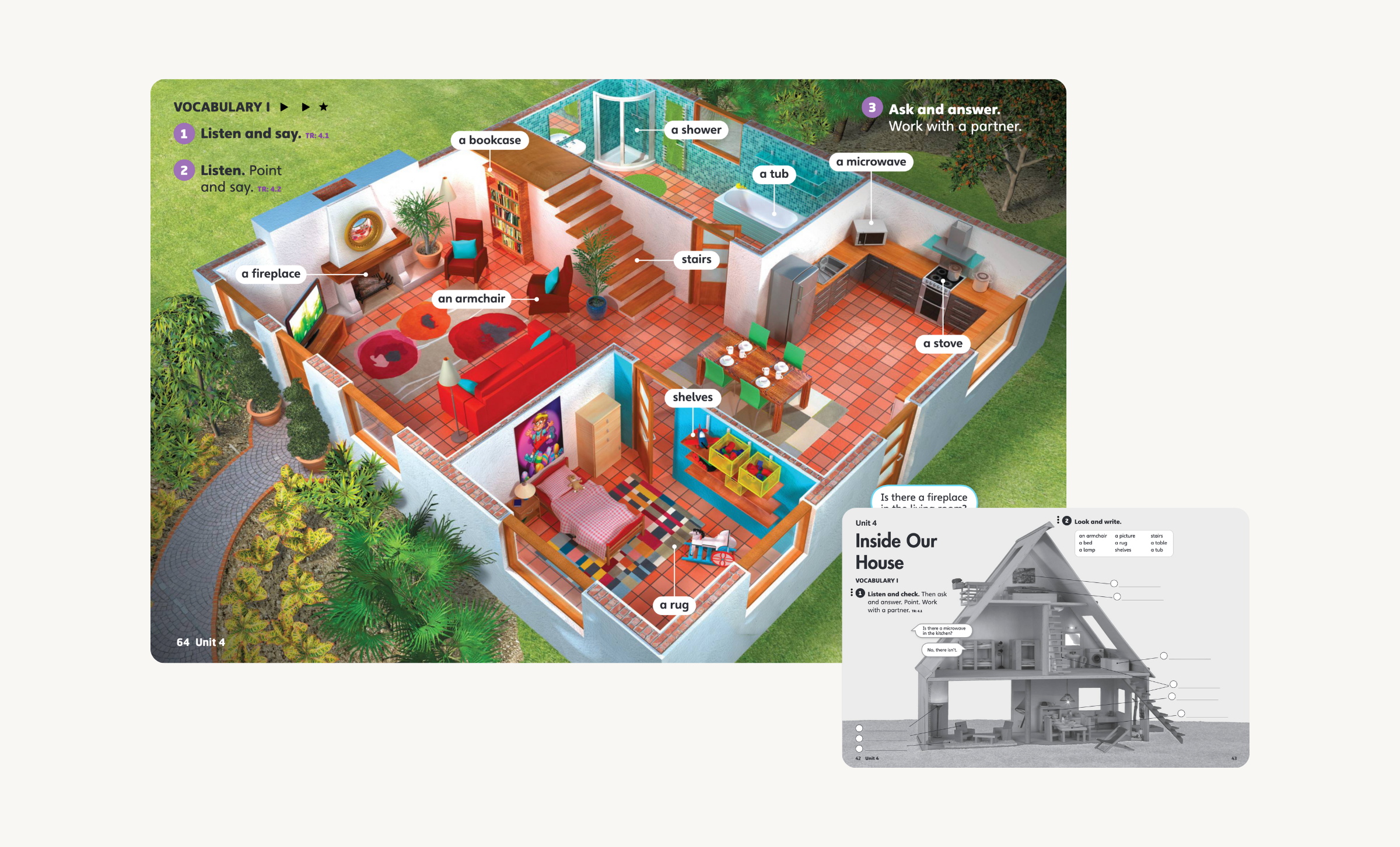 Our World 프로그램은 National Geographic Learning이 개발한 6단계 커리큘럼으로, 각 단계는 9개의 유닛으로 이루어져 있습니다.각 유닛은 주제 소개, 핵심 어휘, 기초 문법으로 시작하며, 이후 이를 확장한 추가 어휘와 문법, 그리고 자연스럽게 연결되는 읽기·쓰기 활동으로 학습을 심화합니다.유닛이 끝날 때마다 학생들은 단원 평가를 통해 학습 목표를 제대로 달성했는지 점검하며, 단계별로 자신 있게 실력을 쌓아 나가도록 설계되어 있습니다.